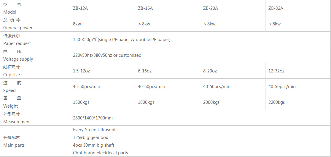 ZB-12A型紙杯成型機(jī)是一種多工位自動(dòng)機(jī)械,通過自動(dòng)送紙、超音波中封焊接、成筒、杯口潤(rùn)滑、注油、沖底紙、底部?jī)纱渭訜帷⒌撞繚L花、上口卷邊、堆疊成品等連續(xù)工序,生產(chǎn)紙質(zhì)的飲料杯、冰淇淋杯或其它食品的錐臺(tái)形容器。 這款機(jī)器既可以生產(chǎn)單面淋膜紙杯又可以生產(chǎn)雙面淋膜紙杯,在原有ZB-12型紙杯成型機(jī)上安裝超聲波焊接功能使產(chǎn)品達(dá)到更好的質(zhì)量和美觀。
